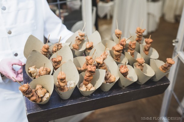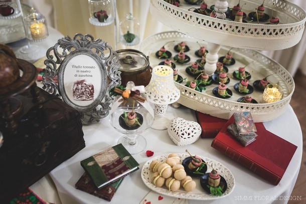 Quarto punto – il cibo? – Certo un bel posto, curato e ben allestito, tuttavia bisogna sfamarli questi invitati! Non avevo dubbi la mia amica Gabriella del catering Bon Ton Pietrini, ci ha deliziato con i finger food, davvero ottimi, che abbiamo studiato insieme per l’occasione. La ringrazio davvero per la sua bravura, professionalità e amicizia. Ho cercato, anche nel food design di richiamare il tema della festa…mi piace che ogni cosa rimandi all’idea iniziale perchè crea continuità e viene apprezzata da tutti gli ospiti.