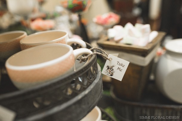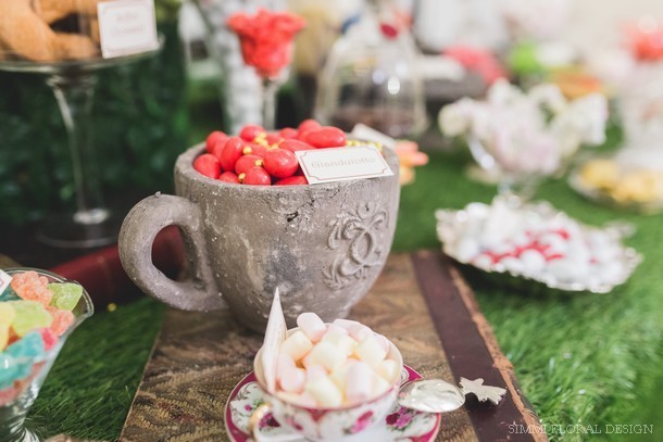 Volevo anche lasciare un ricordo di questa giornata ai miei splendidi ospiti, una bomboniera (eh si! È il mio lavoro!) però non volevo un qualcosa di banale, la classica cosa che speri il gatto faccia sparire al più presto…la bomboniera deve essere un piacevole ricordo di una giornata unica, è importante per il suo valere affettivo e simbolico ma deve essere un piacere per chi la riceve! Volevo un qualcosa di utile, originale e che mi rappresentasse…così ho deciso, ho trovato delle belle tazze da tè (mia passione) e dopo avervi unito un tag di ringraziamento le ho posizionate vicino alla confettata, realizzata su un prato di 4 metri, in modo che ognuno potesse riempire la sua tazza con dolcetti, confetti, cioccolatini e caramelle a suo piacimento. Visto in quanto poco tempo sono sparite tutte le dolcezze e le tazze direi che l’idea è stata gradita. =)
