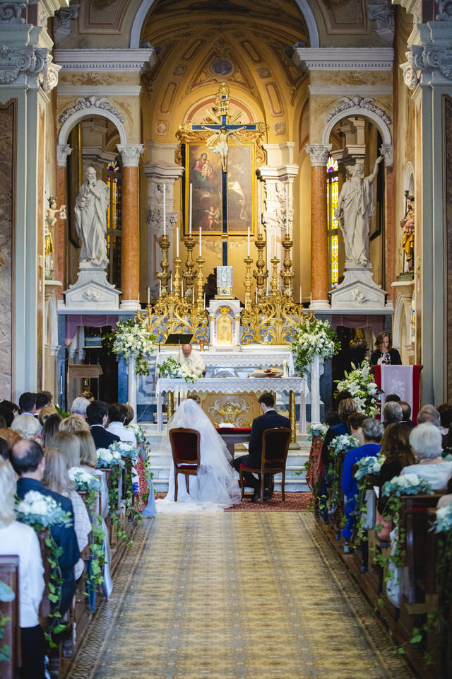 La chiesa è stata decorata realizzando dettagli che valorizzassero l’eleganza che contraddistingue la città di Torino. Delicate composizioni floreali, simili agli elementi botanici dei giardini all’italiana del XV sec., sono state posizionate all’estremità dei banchi e impreziosite da un filo di edera benaugurante.
