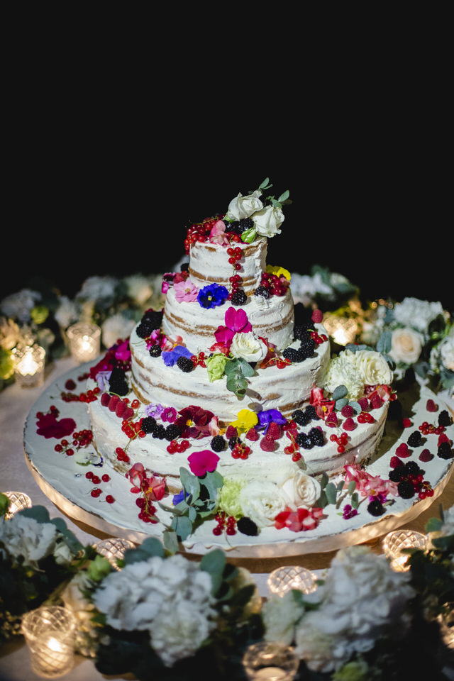 Dopo la cena tutti di nuovo nel parco della Villa per il momento della Wedding Cake. Sotto un cielo di stelle abbiamo allestito la meravigliosa torta del catering My Party e con un lavoro di squadra siamo riusciti a creare il setting perfetto ricco di fiori, lucine e tante emozioni.