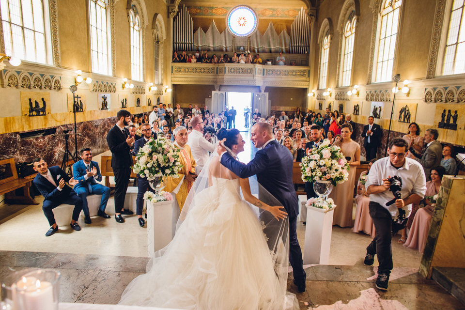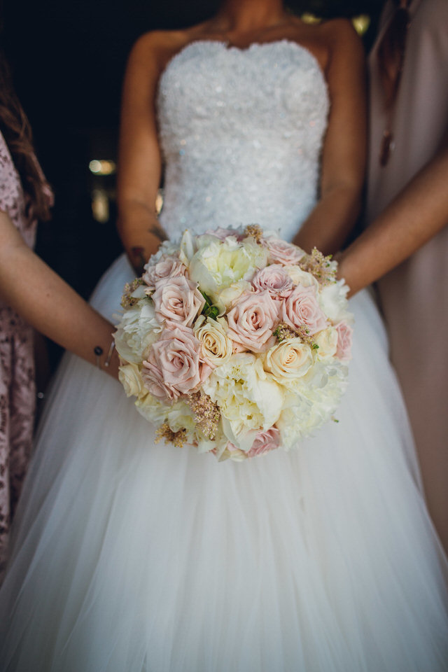 Mariateresa quel giorno era una vera principessa: l’abito dal tocco romantico ricco di tulle con preziosi dettagli sartoriali, firmato Alessandra Rinaudo, delineava alla perfezione la sua silhouette esaltandone la bellezza. Alla romantica cascata di veli pregiati abbiamo abbinato un bouquet che raccontasse la personalità della nostra sposa: rose, peonie, lisianthus, fresie ed un tocco di astilbe, uniti dalle nuances del cipria e del panna… un bouquet dalla forma tradizionale, dall’animo moderno e dalle sfumature raffinate, per questa principessa dal tocco super chic!