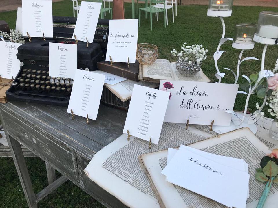 Per dare un tocco di originalità potete individuare una frase che vi rappresenta dove ogni parola è un tavolo, ed un pezzo della vostra storia. Come Antonella e Diego che per il loro tableau hanno scelto queste parole: “Loving you… is a wonderful way to spend a life time“.
