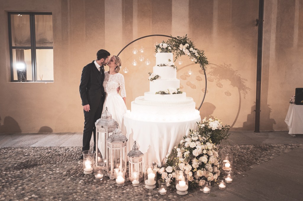 Terminata la cena gli invitati sono ritornati nel parco del Castello per il momento del taglio torta.