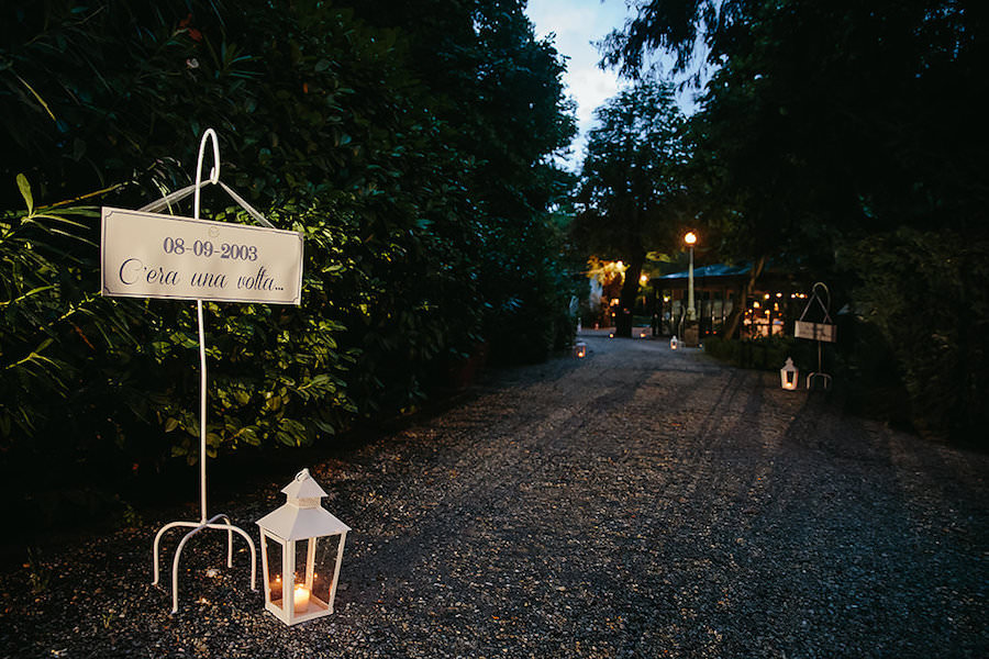 Il tableau de mariage di Enrica e Federico raccontava la loro storia d’amore attraverso i numerosi viaggi vissuti insieme. Per questo angolo abbiamo inserito due scale in legno e le abbiamo unite da un pezzo di compensato, come se fosse una libreria fai da te, quelle fatte dal proprio nonno con i materiali trovati qua e là, negli angoli sperduti della propria soffitta…