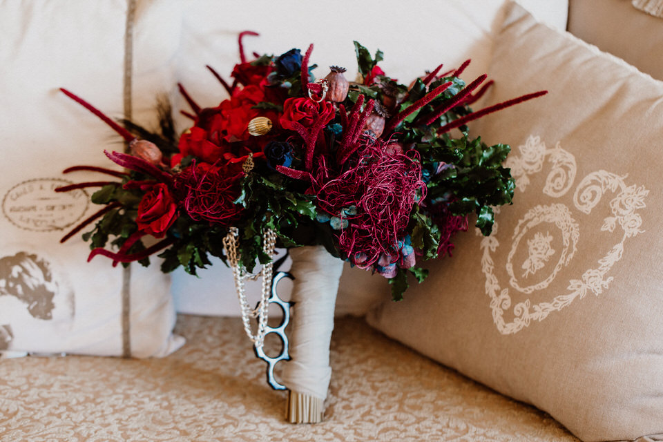 Come in un elegante spettacolo equestre Titti ha indossato un abito perfettamente in tema con il fil rouge del matrimonio. La palette color avorio del tessuto dava risalto alla scelta del bouquet: audace nelle sfumature ed eccentrico nei dettagli.