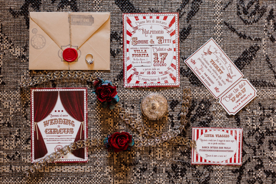 Il matrimonio di Simone e Titti ha inizio con un biglietto davvero speciale: un invito a Villa Fiorita, per condividere il proprio amore sotto un “tendone” di stravaganza e tanta creatività.