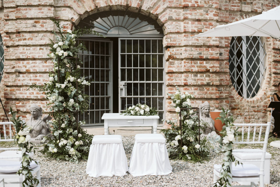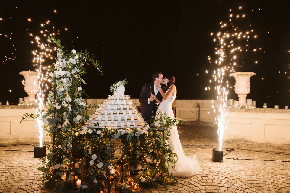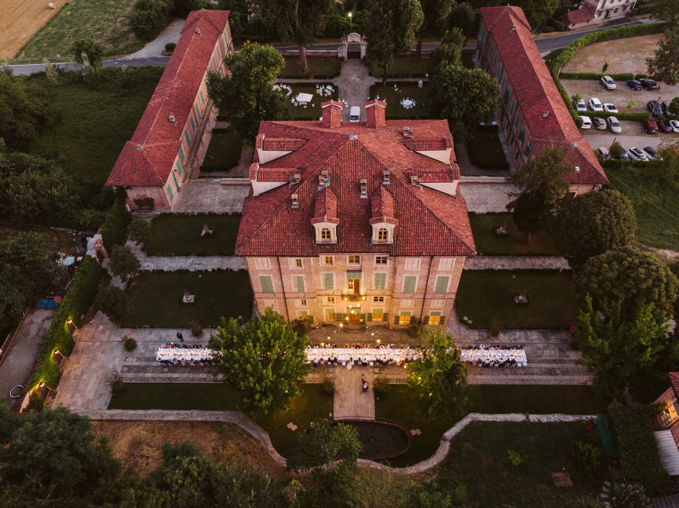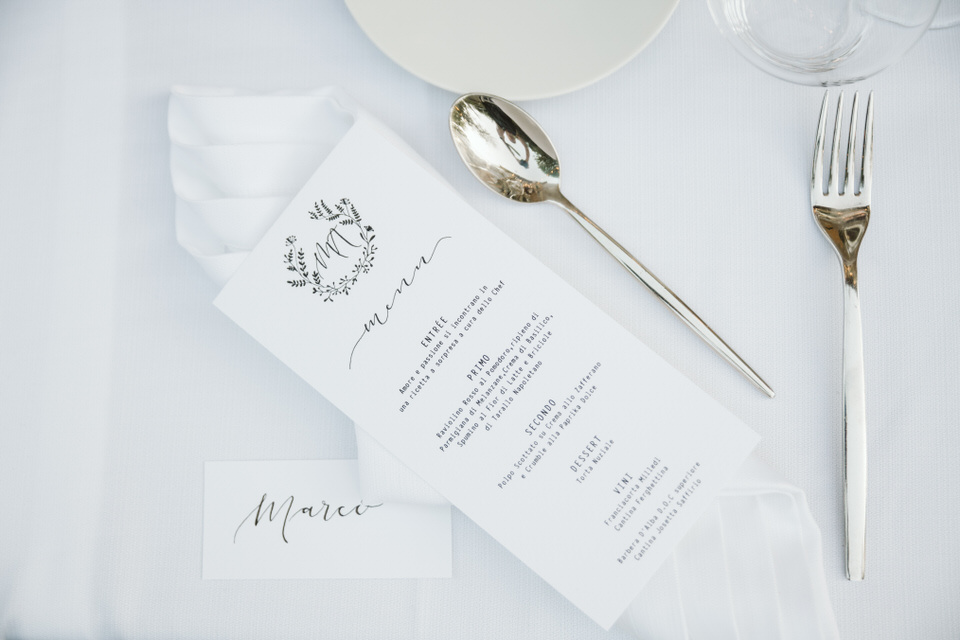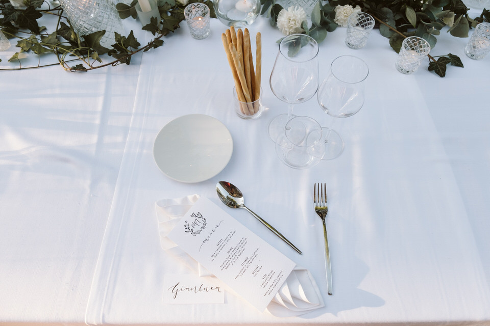 Dal rito nel giardino segreto sino al momento del ricevimento, dove un tavolo imperiale illuminato dalle lucine sospese e dai preziosi dettagli del runner ha regalato un momento conviviale a tutti i commensali. Un centrotavola realizzato con il movimento delle boules di vetro, che ricorda una leggera onda di bolle di sapone sospesa lungo tutto il tavolo. Situato nel sentiero che porta all’antica fontana della villa, dall’atmosfera intima e romantica, il tavolo è stato poi impreziosito dagli elementi di design, di vetro e cristallo, e dal tepore delle numerose candele, che hanno unito gli sposi e i loro invitati in un unico abbraccio, pieno di magia e di emozione.